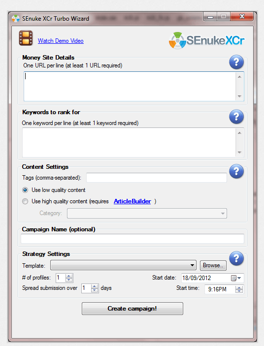 Mettre en place une campagne complexe de référencement en 30 sec c’est à présent possible, et même si vous êtes un pur novice! Avec aucune connaissance vous pouvez définir votre stratégie et lancer votre campagne. Le défaut majeur de Senuke était sa complexité de prise en main, c’est désormais une chose révolu avec Senuke XCR.